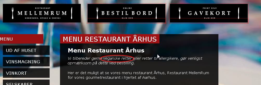 MellemRum tilberede veganske retter - husk at gøre opmærksom på det ved bestilling.